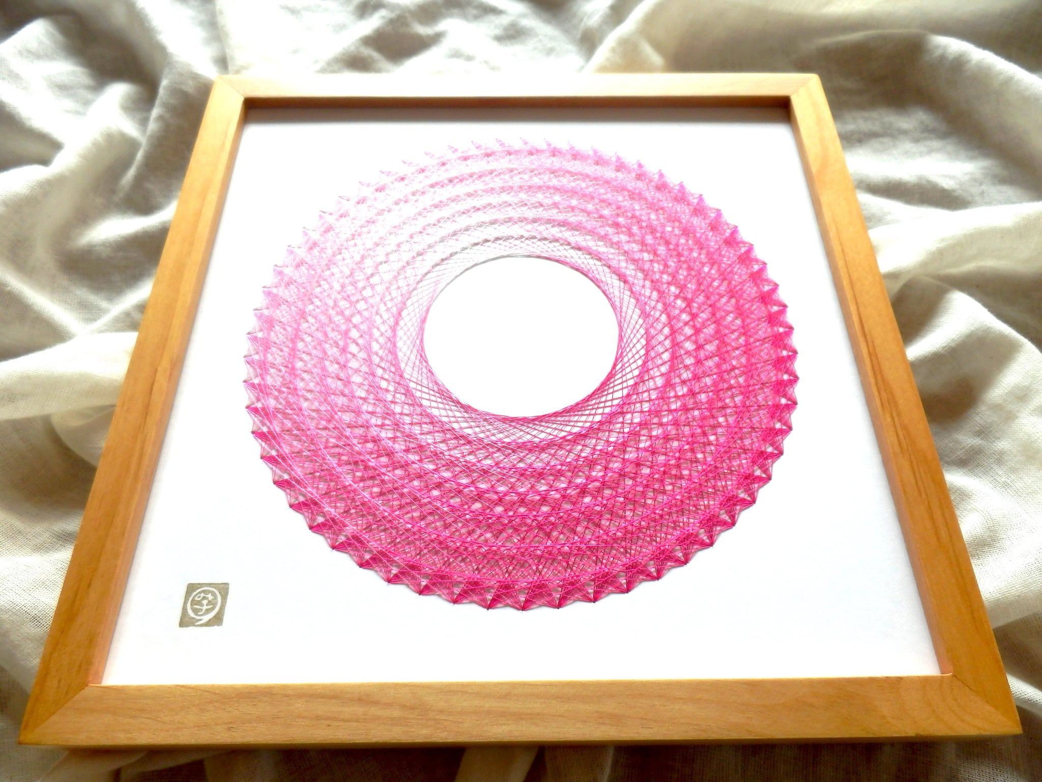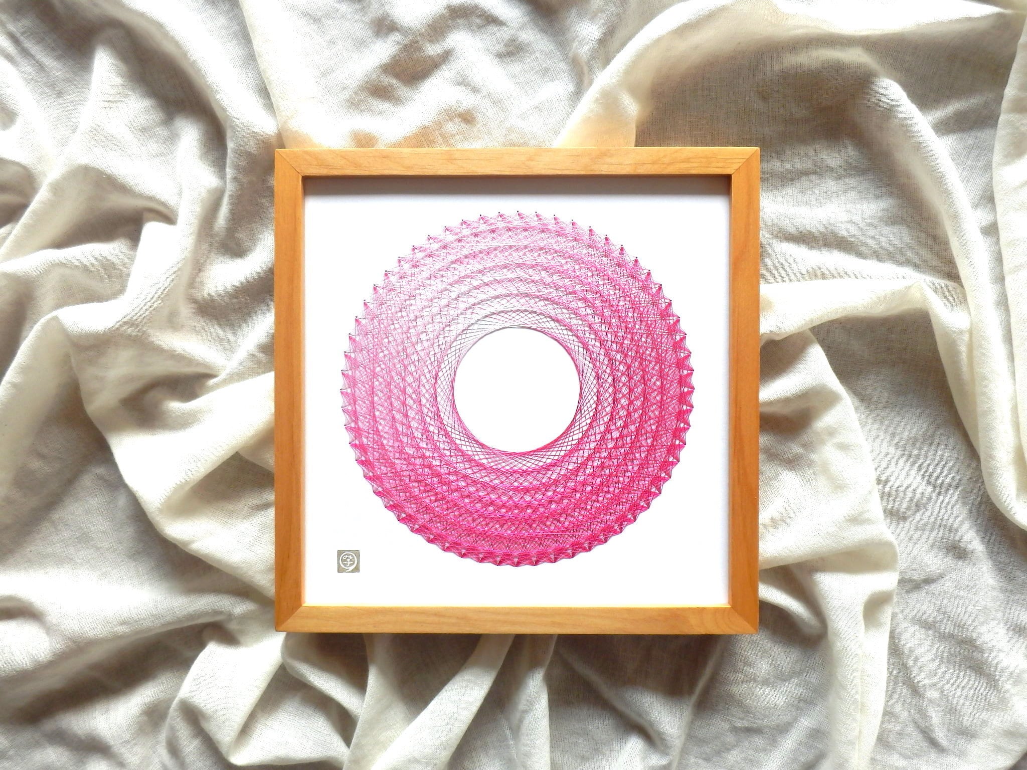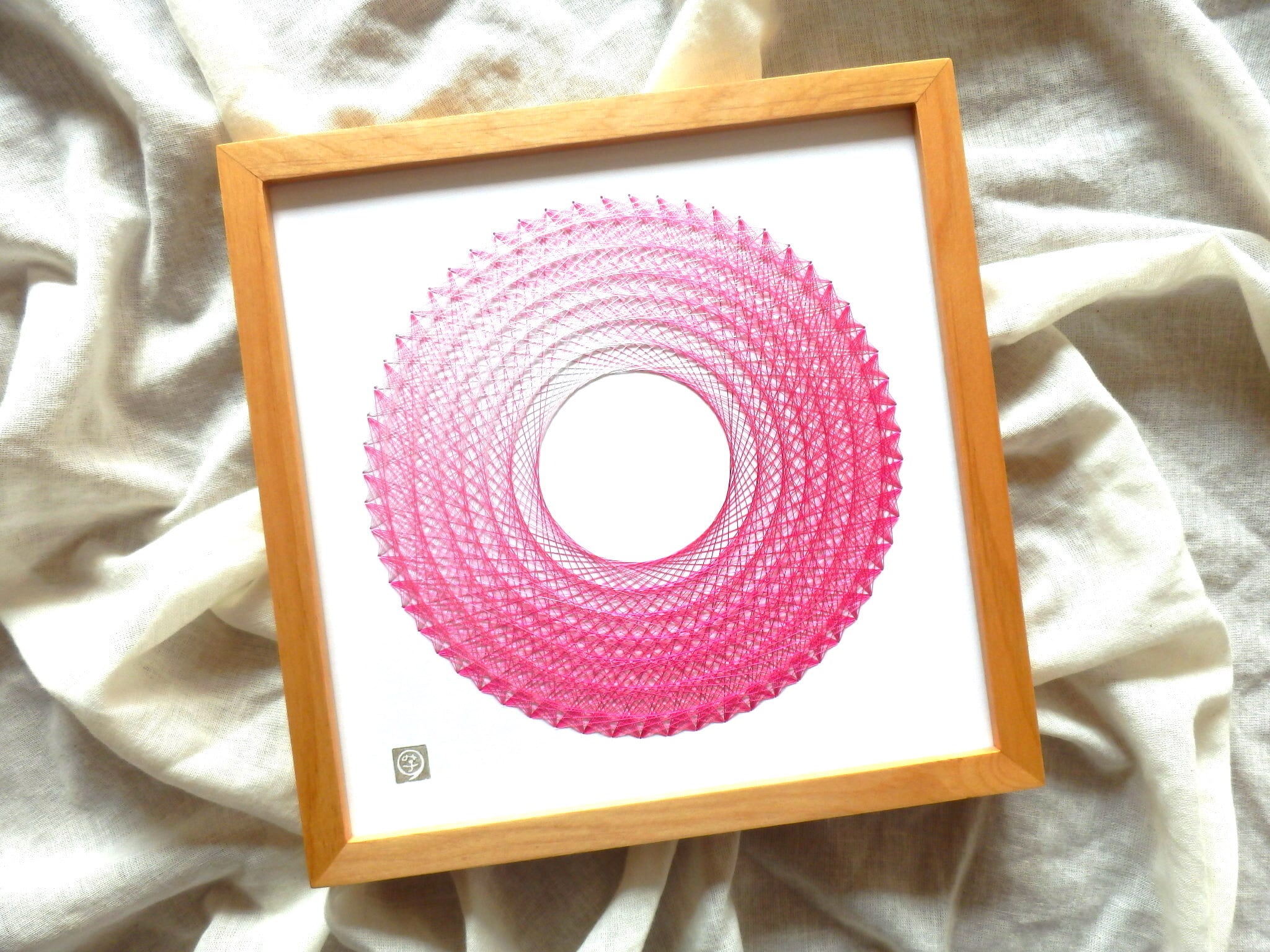 ピンクの絹糸を使い、明るく愛らしく美しい光の環を作りました。