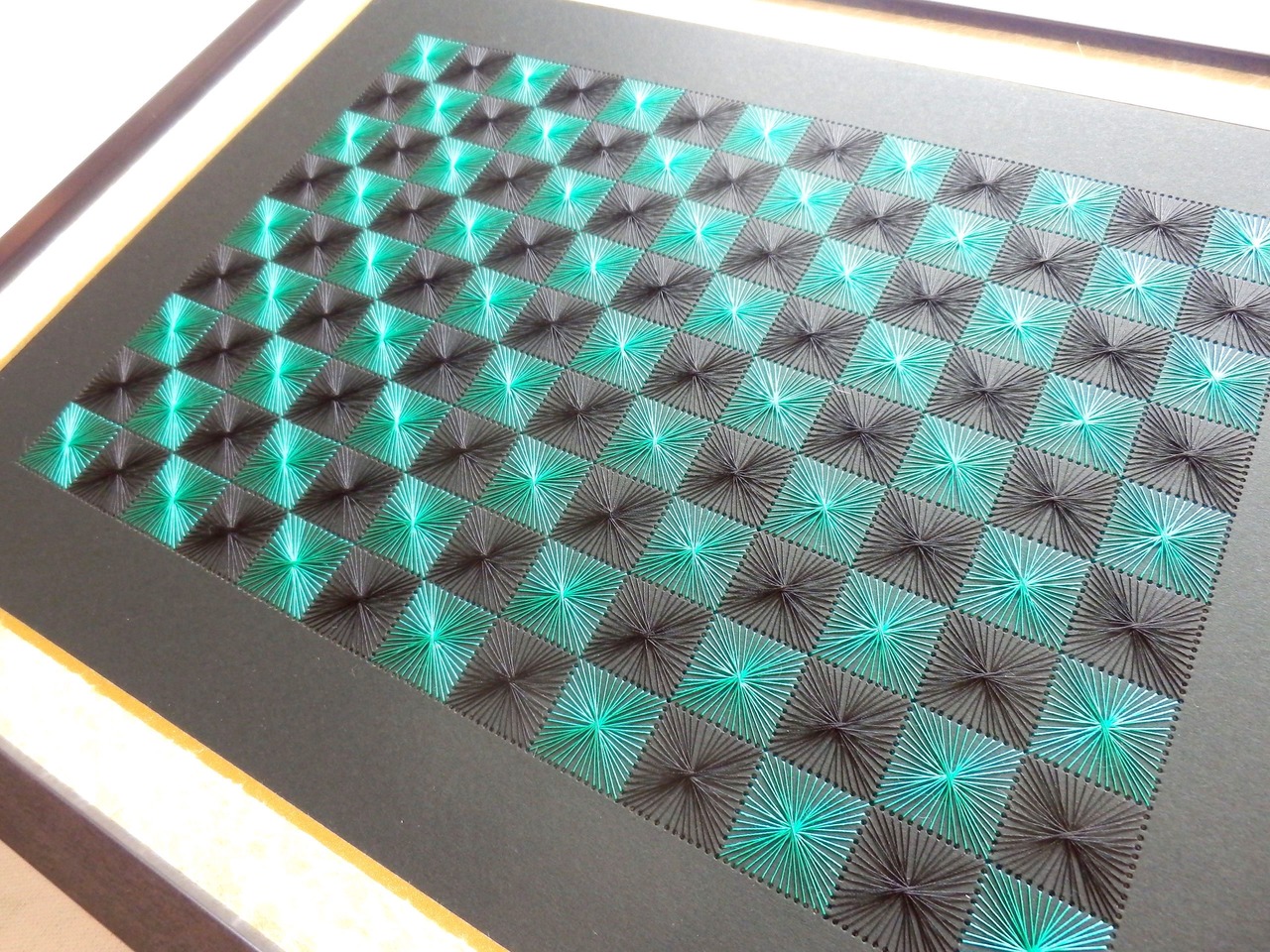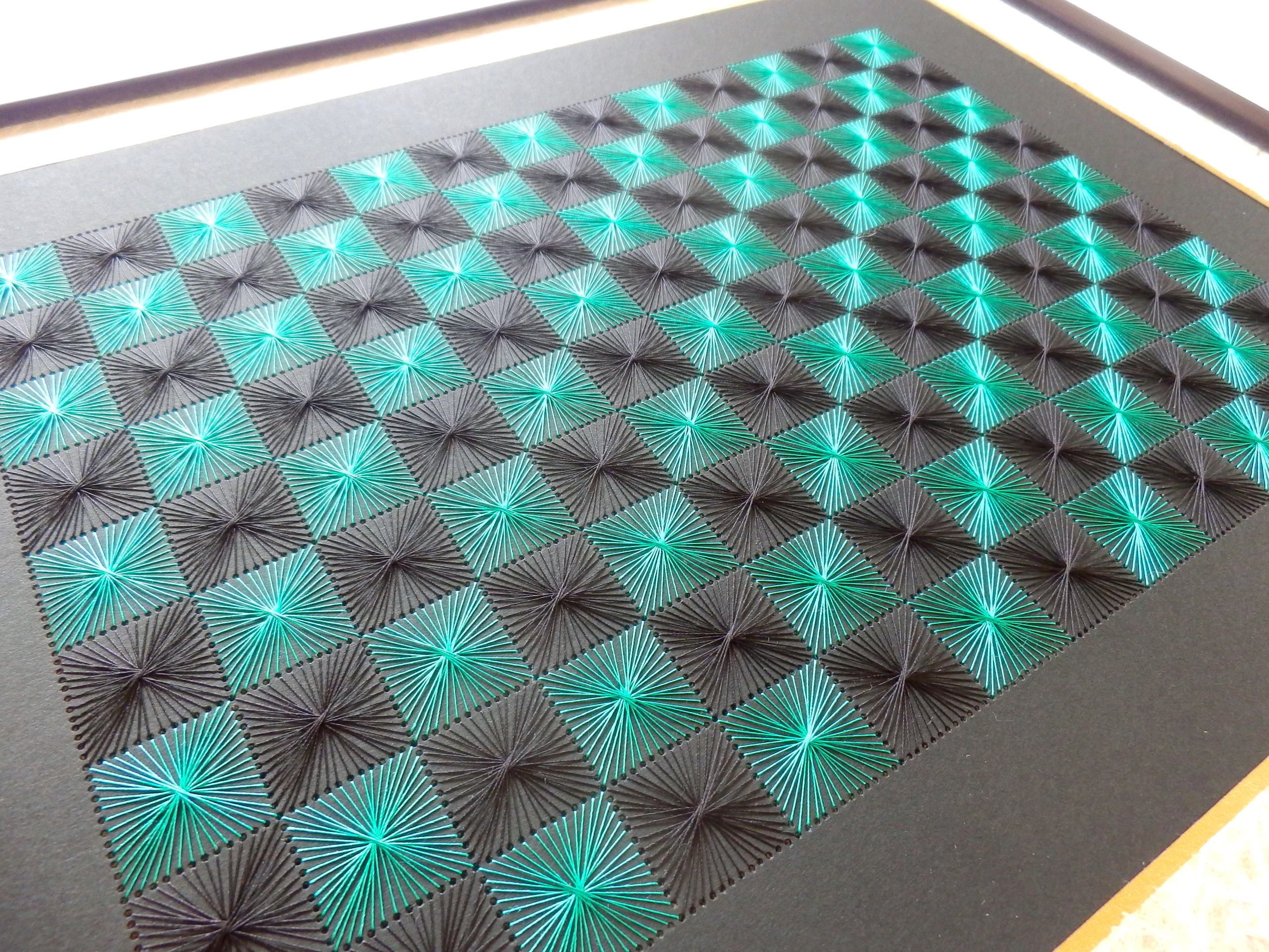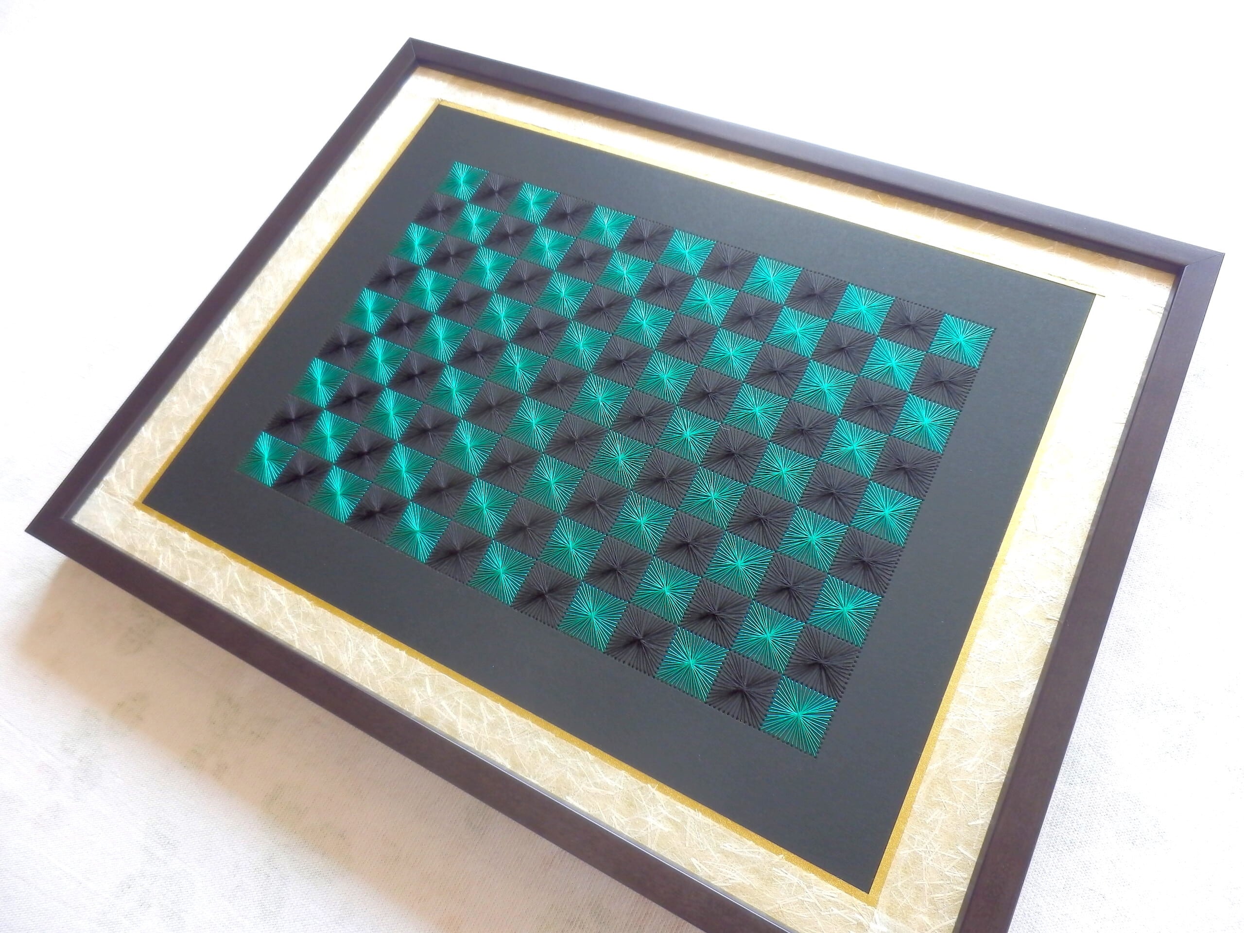 現代の流行色の絹糸を使って、市松模様を糸とおしで表現しました。