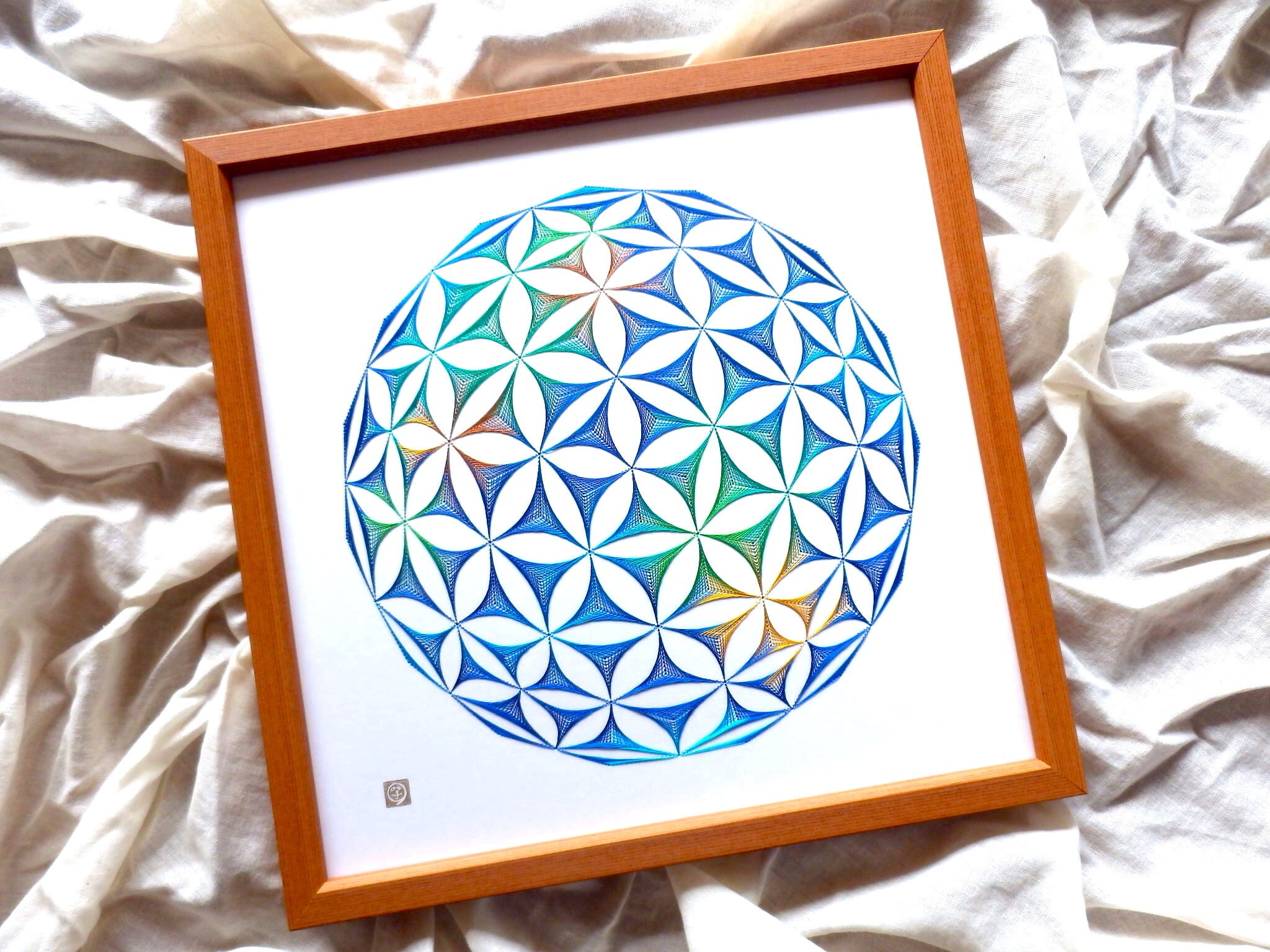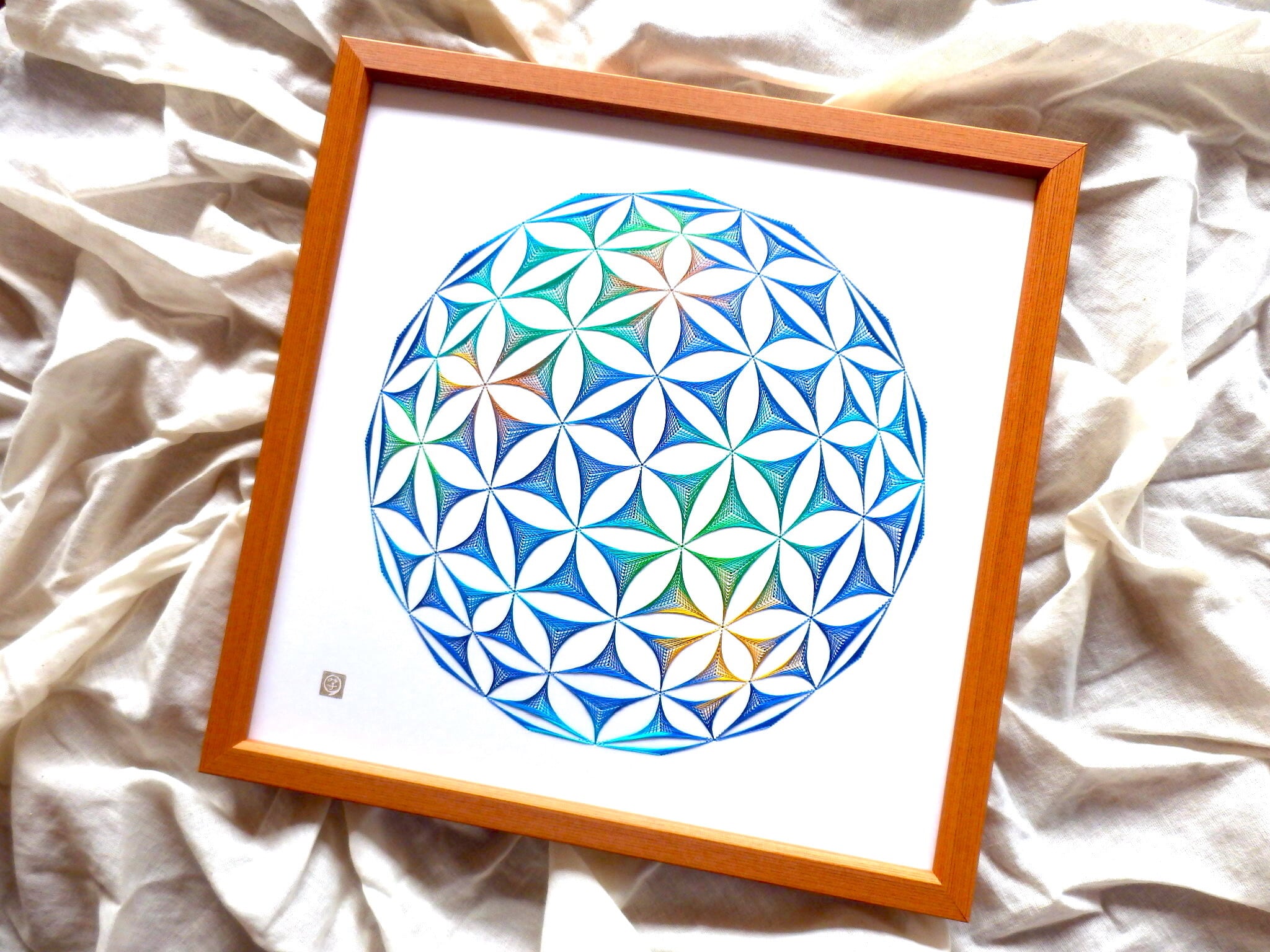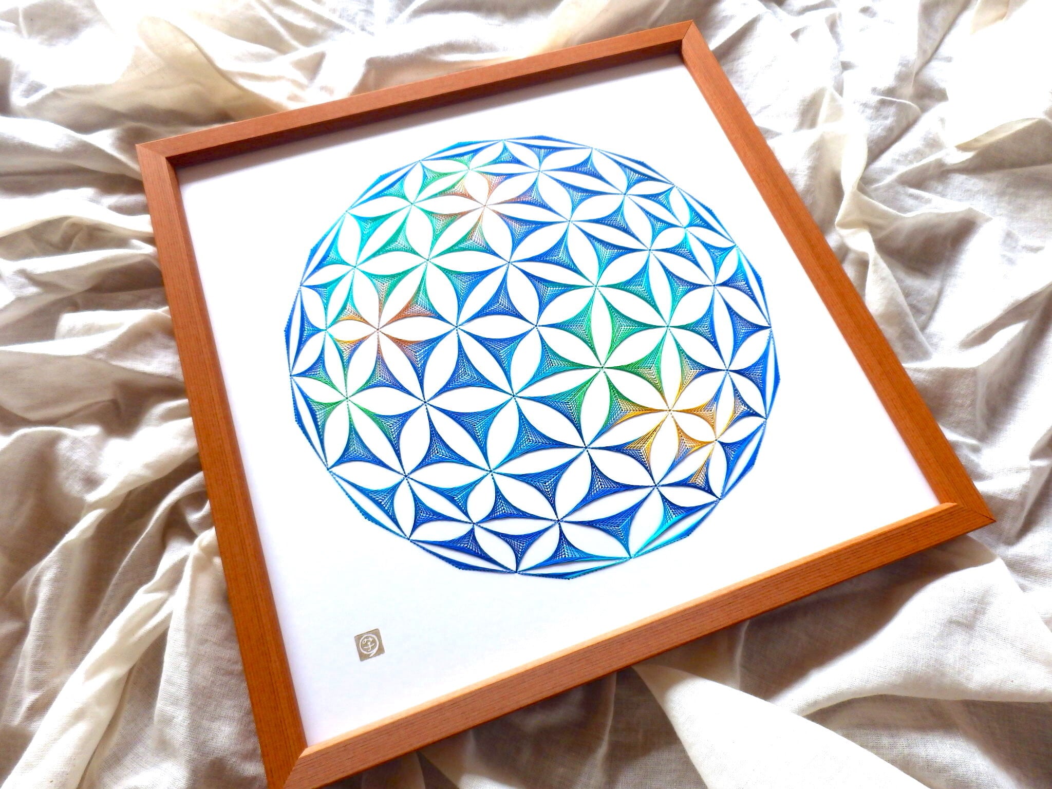 ちきゅう【バックミンスターフラワーオブライフ】 30×30cm (額縁付)